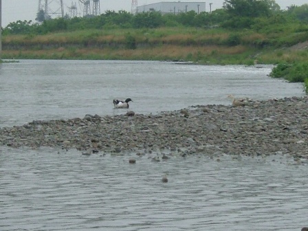 雨が午後からあがったので多摩川に出てみました~(^_^)/ おっかなビックリ!先週、紹介した多摩川の護岸工事のジャリを敷きつめた河川敷に数時間のうちに川が戻ってきていました~☆