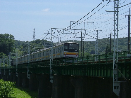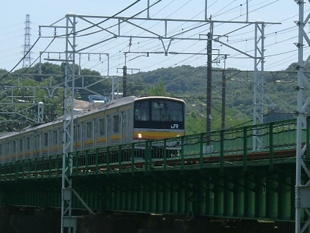 昨日、多摩川で撮影した南武線205系です。6両編成なので約120mの長い編成です。ホームの長さが約140mとなります。10両編成だと約200m、ホームの長さは約220mです。JRの電車の標準の長さは、1両20mです。JR山手線、中央線等ほとんどの車両が車両編成・運行上20m車で統一されています(新幹線車両は確か25m車(30m?)だったと思います)。