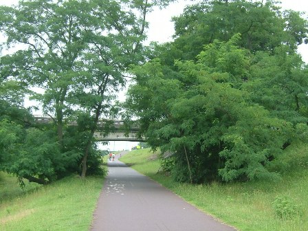 写真は、私が二番目に好きな場所、多摩川の木々の緑生茂るトンネルです。この下を通ると心が落ち着きます。ホンのわずかな木々の緑のトンネルですが・・・!自然は素晴らしいですね~☆