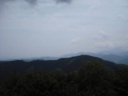 右の写真は、景信山から城山、高尾山を撮ってみました。正面の山が城山で、左の山が高尾山です♪