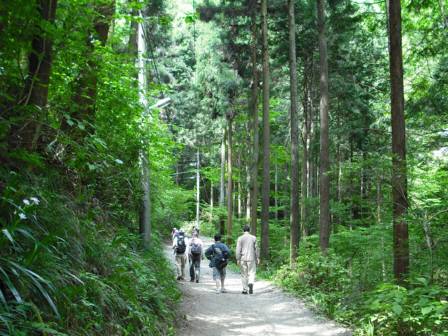 左の写真は、6号路の登山道の風景です。木々の緑と小鳥の鳴き声が新鮮でした。