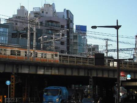 中央線のE233系が朝日を浴びて神田駅に進入していきます♪