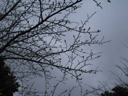 写真右手が、今日の桜並木の木々です。蕾が先週よりも大きくなっていました。