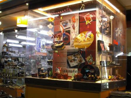 合羽橋道具街のニイミというお店に正月の御神酒(おみき)のセットが飾られていました。