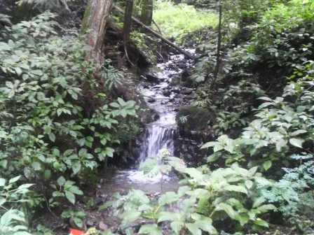 下山する途中で見つけた小さな滝です。周辺の緑と調和して綺麗でした。