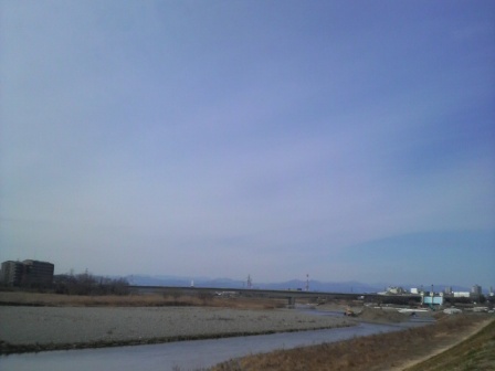 今日の多摩川、 午前10時現在 気温: 5.9℃ 湿度:28% 天気:晴れ