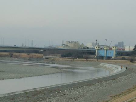 今日・午後12時30分現在の多摩川、曇り(少し薄日)、気温9℃、無風♪