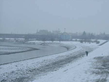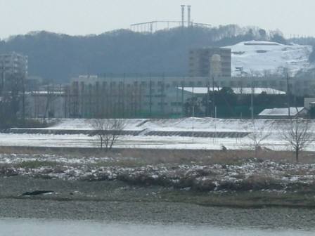 多摩東部の多摩川でも積雪が10Cm程、観測されました(写真は、定点観測の場所)。