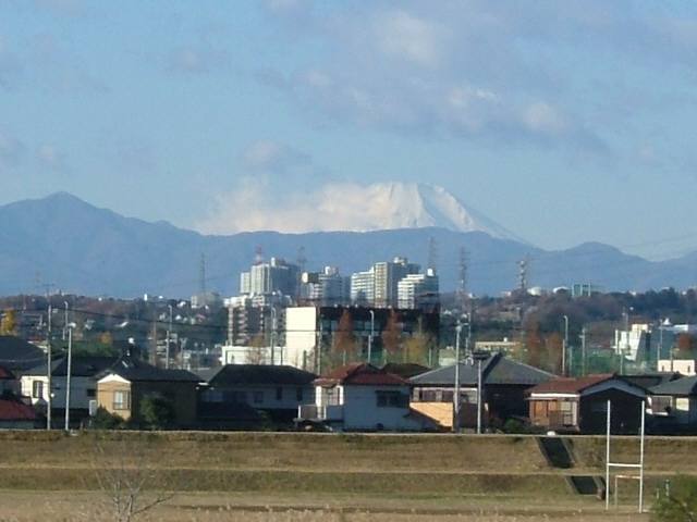 午後1時半ごろ多摩川に出てみましたが、富士山の山影が薄っすらと見える程度でした。カメラに撮る事は難しいですね!毎週、週末には富士山が顔を出してくれるでしょう!