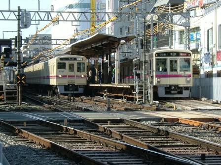 写真左は、東側から調布駅を撮りました(6000系と7000系が停車しています)。