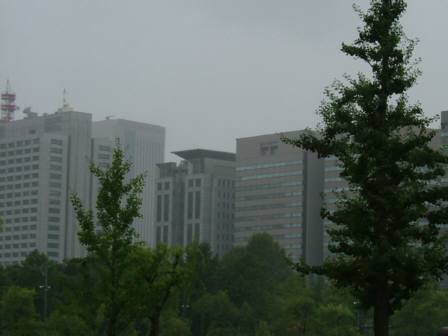 日比谷公園の方は、霞ヶ関界隈の日本の国家を支えるビル群が迫って脅威を与えています。立派なビルで仕事をしている官僚達は、良い日本国家を築かんために日夜仕事に励んでいるでしょう!