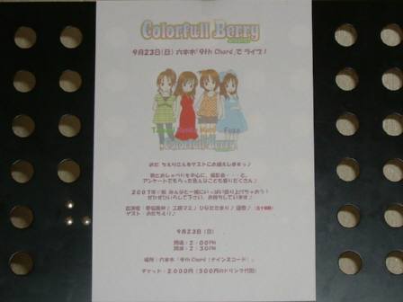 ☆明日、9月23日(日)に工藤マミちゃんが「からふるべりぃ☆」ライブイベントに出演します。