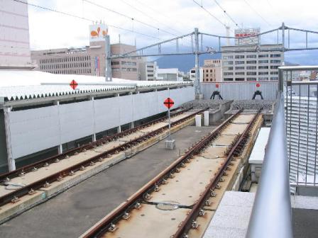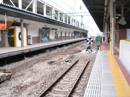 「2011」を合言葉としてJR九州は、九州新幹線の鹿児島中央・博多間(新八代・鹿児島中央間は既に営業運転中)の完成を目指し工事に入っています。博多駅も在来線の駅改良工事を行っています。8番線(鹿児島・長崎方面の下り線)9番線(福北ゆたか線(篠栗線))の廃止に伴い、8番線の吉塚駅寄りに福北ゆたか線は移動しました(写真がその風景です。写真の左上に山陽新幹線の建物が見えます)。