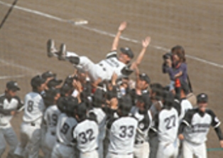 去年の秋季リーグ戦に続いて2季連続、通算30回目の優勝です。一昨年の秋の神宮大会では全国優勝をしています。今日の試合は接戦だったようです。9回裏一死満塁のチャンスを押し出しで勝利しました。春のリーグ戦の優勝は8年ぶりです。第二期黄金時代が到来する春の予感がします。6月の全国大会で東京に来ます!その他サッカー、バスケット、バレーボール、軟式テニス、弓道等が強く西日本大会では常に上位に入賞しています。