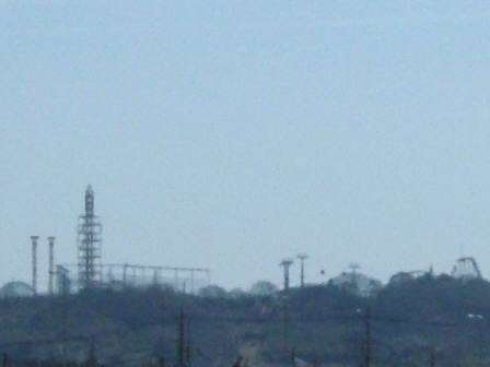 写真の右手に見えるのが、木製のジェットコースタです。左手の鉄塔付近の下に、阪神タイガースの宿敵「読売ジャイアンツ」の練習場(野球場)と寮があります。