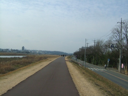 写真は、今日の多摩川です。この道のように真っ直ぐな心で来年の大会に望もう!この多摩川の道もけして逃げません。人を迎え入れてくれます。180度のパノラマの世界です。心が大きく開かれました!