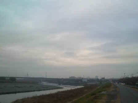 多摩川の岸辺に立つと寒かったぁ!