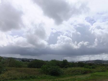 右の写真の雲が、アットいう間に広がって激しい雨が降ってきました。