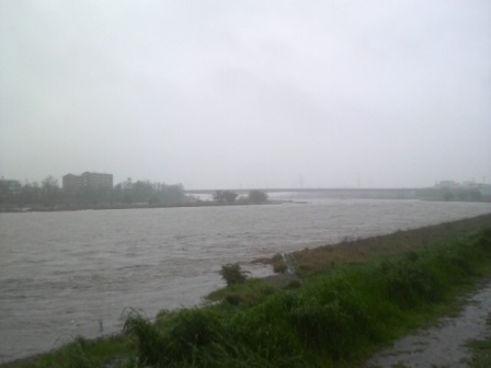 写真右:一昨日(3日)の多摩川です。不気味に恐ろしく流れています。