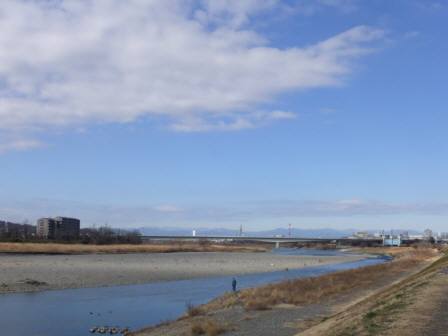 今日の多摩川、 午前11時現在 気温: 6.7℃ 湿度:29.0% 天気:晴れ