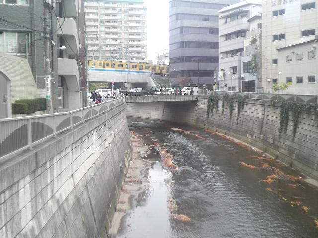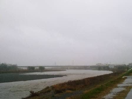 今日の多摩川、 午前10時現在 気温: 9.4℃ 湿度:76.0% 天気:雨