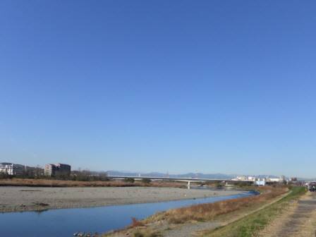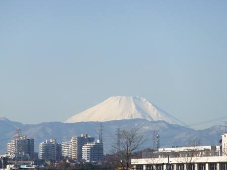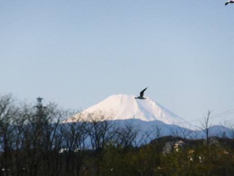 早朝、快晴ならばに多摩川に出て真っ白な富士山を見に行きます。