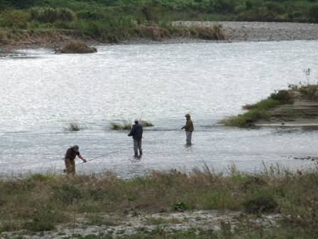 最初は右岸の木々の紅葉(冷たい風をもろに受けるので・・・)