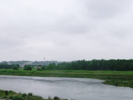 今日の多摩川、 午前10時現在 気温:21.0℃ 湿度:69.0% 天気:くもり