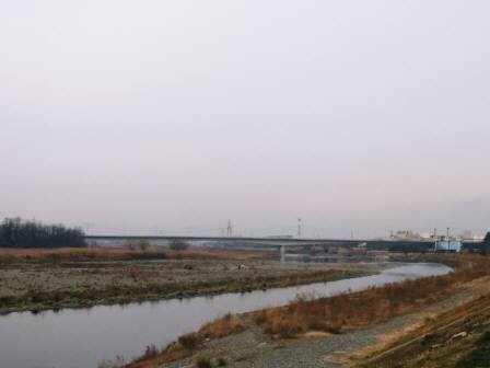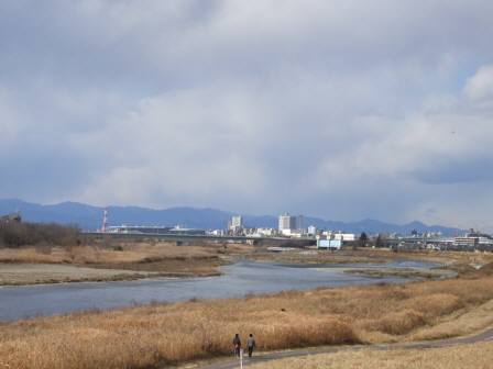 今日の多摩川、 午後12時現在 気温: 6.4℃ 湿度:42.0% 天気:くもり