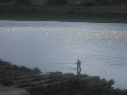 定点観測をしている場所の多摩川に釣り人がいて釣りをしています。