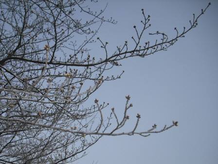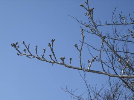 右の写真は、桜並木の枝に小さな蕾を発見!今後、気温が13℃前後で推移すれば...