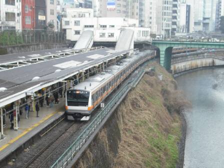 写真は、聖橋から撮った、JRお茶の水駅の風景です。