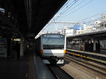 4番線(中央快速線上り)にE233系が入線してくる雄姿です。