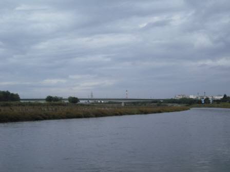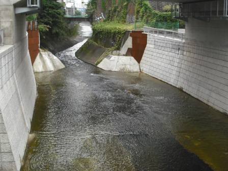 この付近は、川幅も狭く周囲をコンクリートで覆われています。