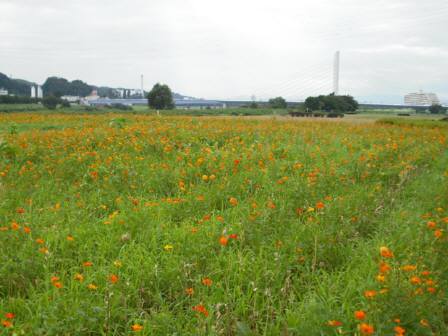 久々に多摩川に出てみました。河川敷に素晴らしいお花畑を発見!