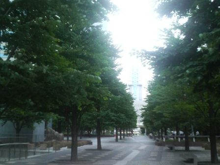 写真は、何処かの大学構内を思いうかべるような木々が生い茂っています。